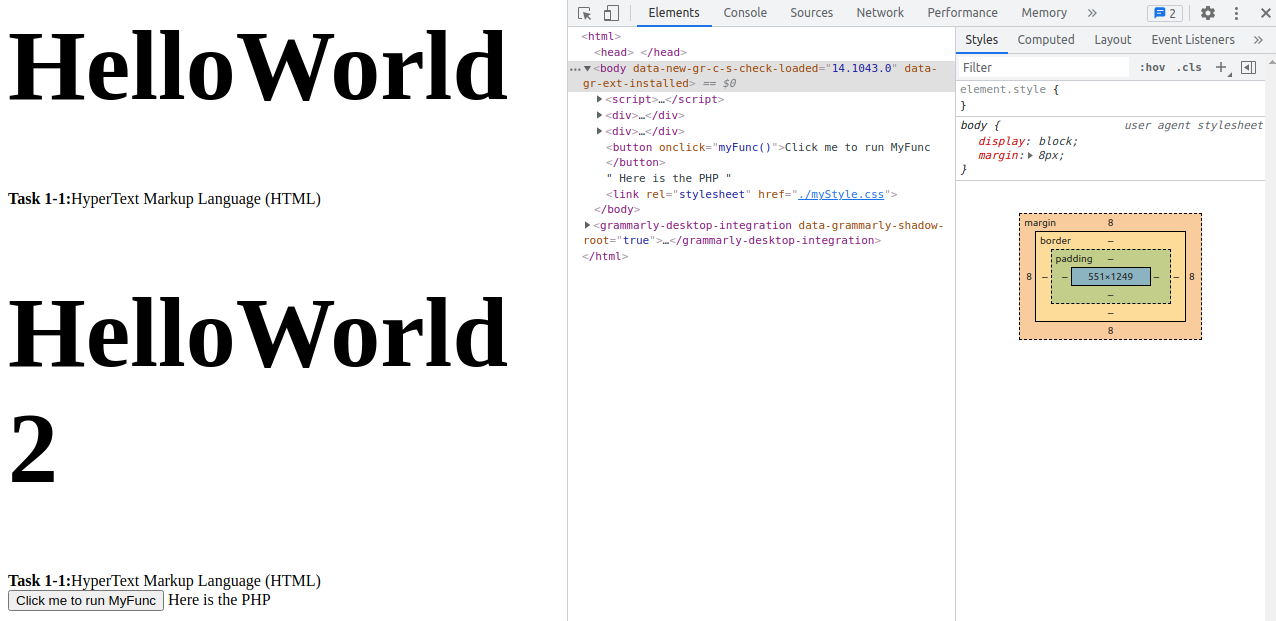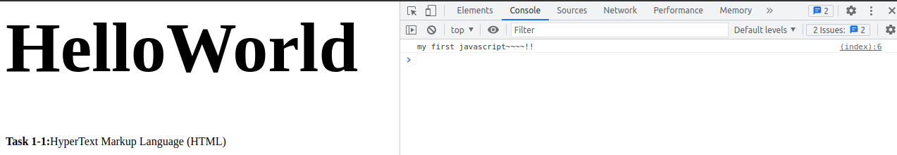 In your browser, open the console by right click > inspect and select console tab. Enter localhost/myHTML in the address bar and enter.